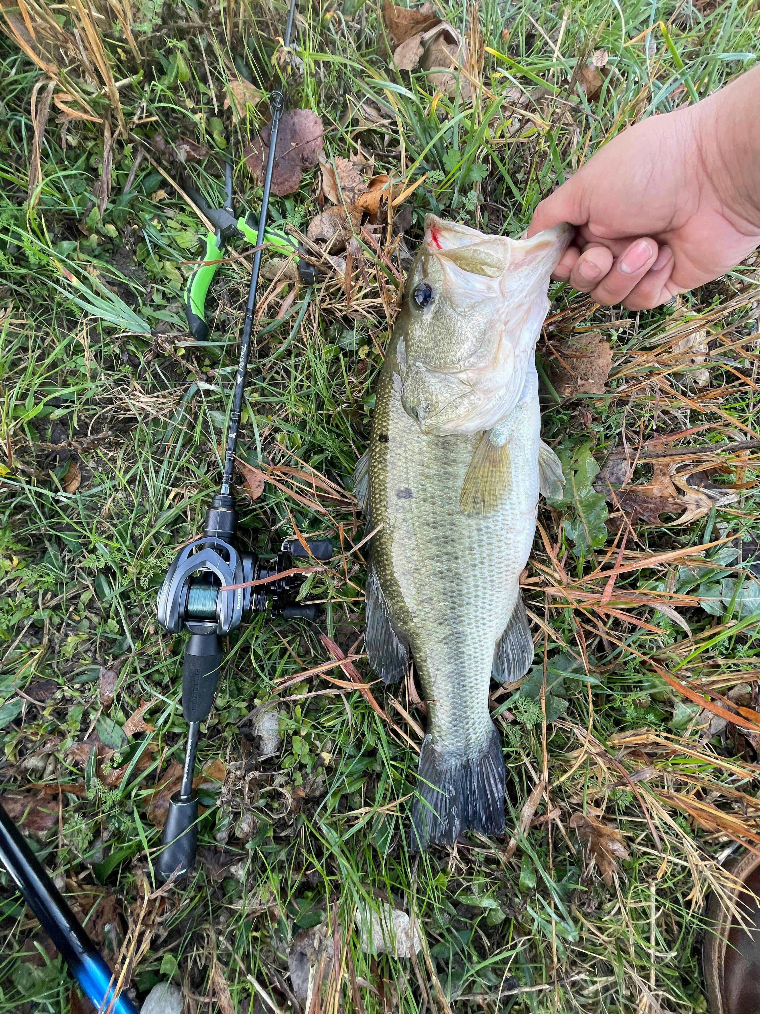 The Kestrel Elite was a whole other store. I managed to haul in that same bass that I couldn’t get before with the Aldebaran. He weighed 3.05 lbs and probably had a pound of brush come along with him. Went around the pond and pulled a 2.65 lbs bass out of some more brush and up over some sharp foliage at the edge.