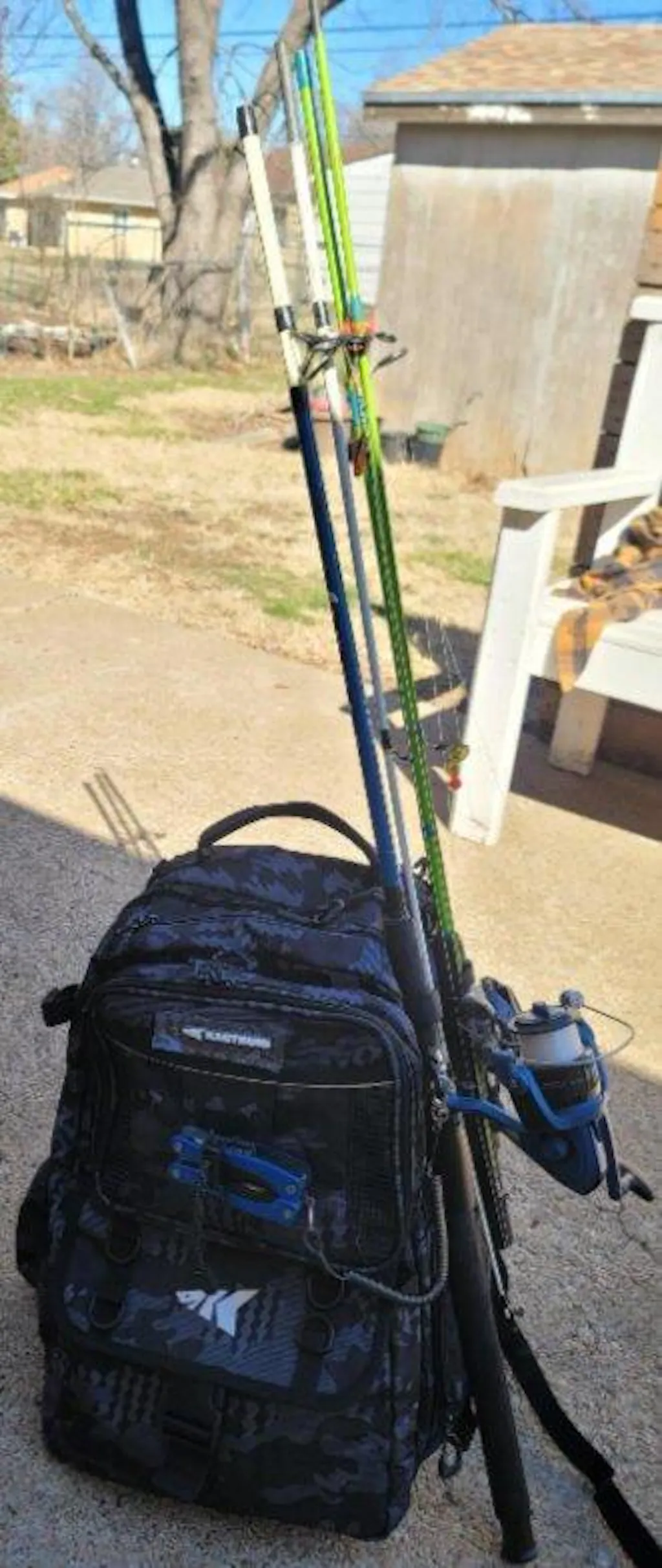 The bag came quickly and well packed. Once it was set up it looked great. The extra storage and bait bag is great to sort out extra baits and other items like leaders and small swivel packets. Can carry up to three rods and plenty of room for extra storage or fishing bags. The only one negative...wish it was waterproof as I am using it on a fishing kayak.