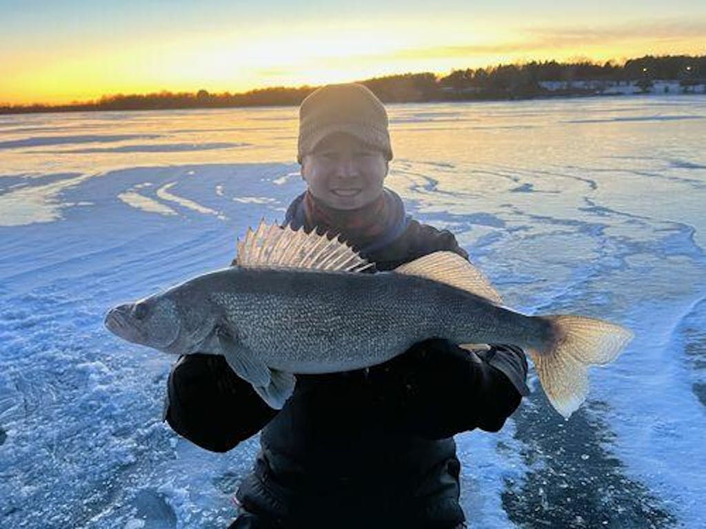 I put 6 pound on my heavier ice set up. Knots hold well, was sensitive enough to catch small pan fish and strong enough for this 5.5lb walleye when she took was serious runs pulling drag. Very happy with performance to date.