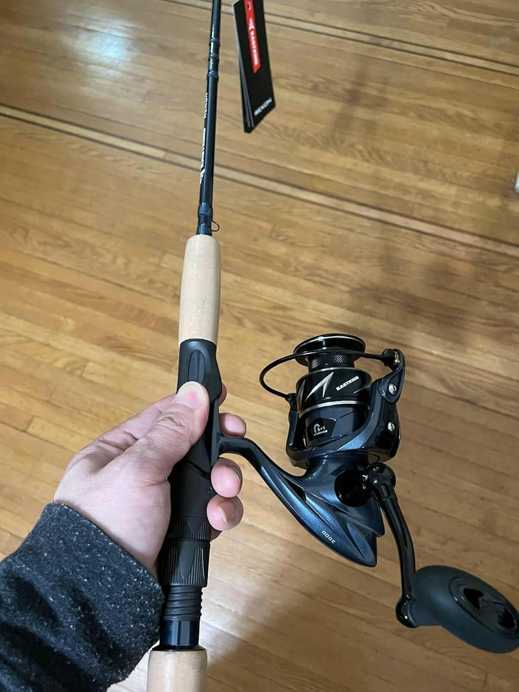 The courier was very helpful and delivered a big box to my door. After opening it, there was a transparent plastic bag inside, which contained a long and thin cardboard box and a small box. The fishing rod was in the long and thin cardboard box, and it was wrapped with foam in the front and back to protect the fishing rod well. The fishing rod is composed of two sections, each section is 3 and a half feet, which is very convenient to put in the trunk of the car, and it is 7 feet long when put together. The workmanship is fine and very smooth, the grip is very comfortable and has a good feel, it is extremely flexible and elastic, the spinning wheel is gray and black, the handle is easily installed and locked, it rotates very smoothly and silky, there is no sense of frustration, and the bearings are super quiet. I am also an angler with more than ten years of fishing experience. I personally feel that this Kastking brand has a good price-performance ratio. I am looking forward to the weather getting warmer so that I can set out to the Atlantic Beach to try this new fishing rod and fishing reel. I should get good results!